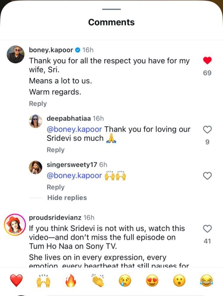 उसी पर विचार करते हुए, सोनी एंटरटेनमेंट टेलीविजन द्वारा साझा किए गए प्रोमो में, बोनी कपूर ने लिखा, "मेरी पत्नी श्री के लिए आपके सभी सम्मान के लिए धन्यवाद. हमारे लिए बहुत मायने रखता है. हार्दिक शुभकामनाएं." और भी अधिक अर्थपूर्ण बोनी कपूर की प्रतिक्रिया से और भी अधिक पुष्टि हुई यह भावपूर्ण बातचीत, इस क्षण को भावनात्मक गहराई प्रदान करती है, और यह दर्शाती है कि श्रीदेवी की विरासत उनके प्रशंसकों के माध्यम से जीवित है.